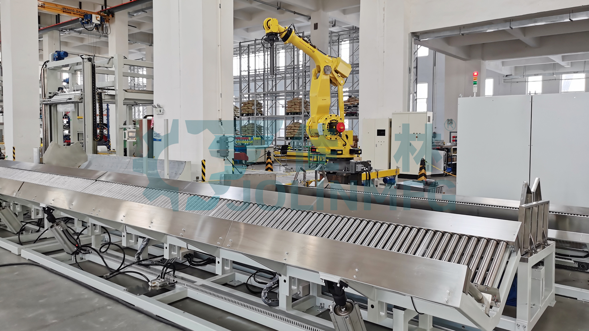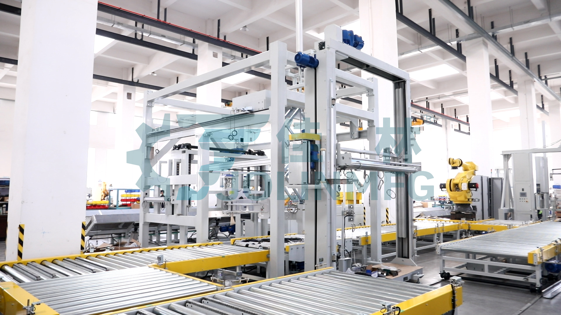 佳林“無紡布自動包裝線”集ERP和MES系統(tǒng)、周轉(zhuǎn)搬運、生產(chǎn)線合流、機器人自動碼垛、自動放紙板、自動纏膜打包、自動覆頂膜、自動尼龍袋纏繞包裝、自動稱重、自動打印貼標(biāo) 、自動翻轉(zhuǎn)下線、自動入庫、立體倉庫等下游流程。