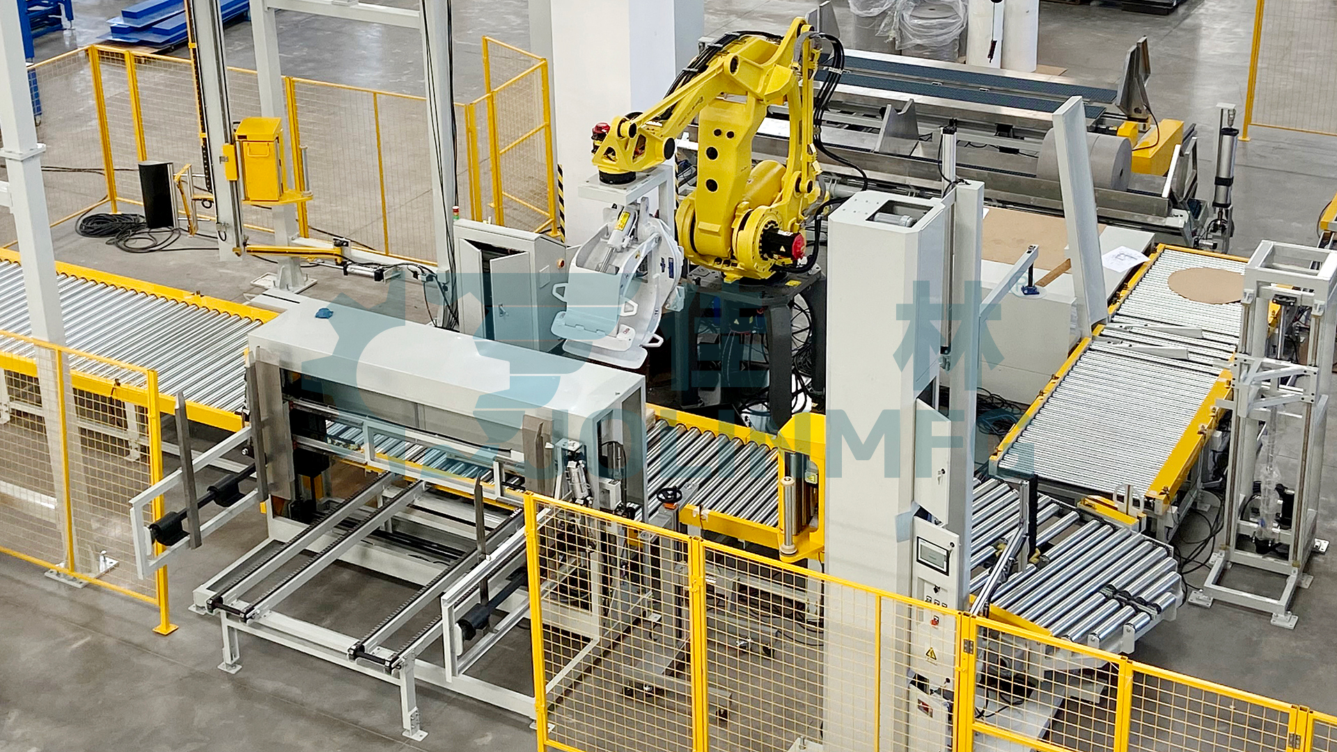 佳林“無紡布自動包裝線”集ERP和MES系統(tǒng)、周轉(zhuǎn)搬運(yùn)、生產(chǎn)線合流、機(jī)器人自動碼垛、自動放紙板、自動纏膜打包、自動覆頂膜、自動尼龍袋纏繞包裝、自動稱重、自動打印貼標(biāo) 、自動翻轉(zhuǎn)下線、自動入庫、立體倉庫等下游流程。