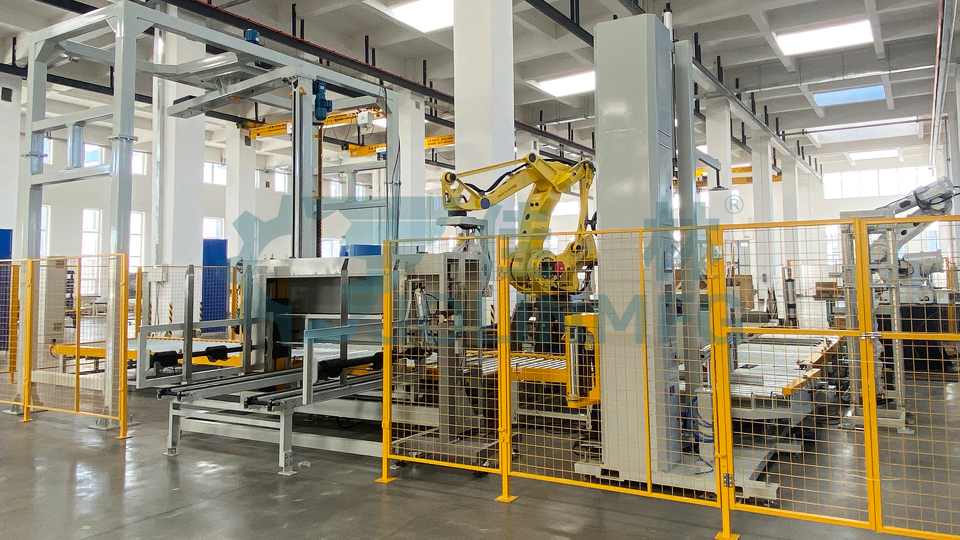無紡布自動包裝線集軟件系統(tǒng)、周轉(zhuǎn)搬運(yùn)、生產(chǎn)線合流、機(jī)器人自動碼垛、自動放紙板、自動纏膜打包、自動覆頂模、自動尼龍袋纏繞包裝、自動稱重、自動打印標(biāo)貼、自動翻轉(zhuǎn)下線、自動入庫、立體倉庫等流程。